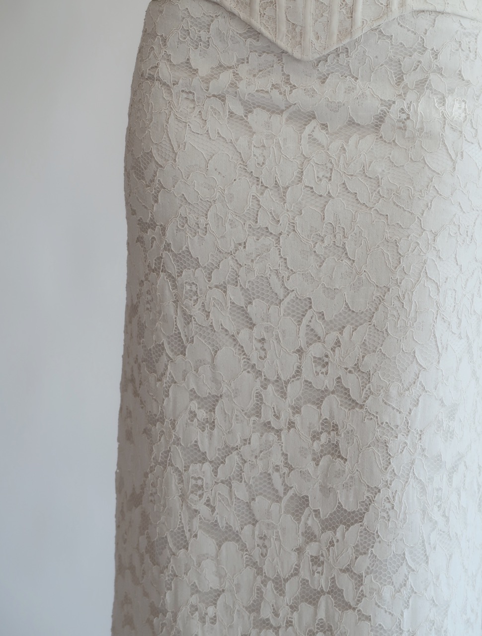 - Etek basenden itibaren hafif açılımlı formdadır ve etek ucu dantel kenarlıdır.