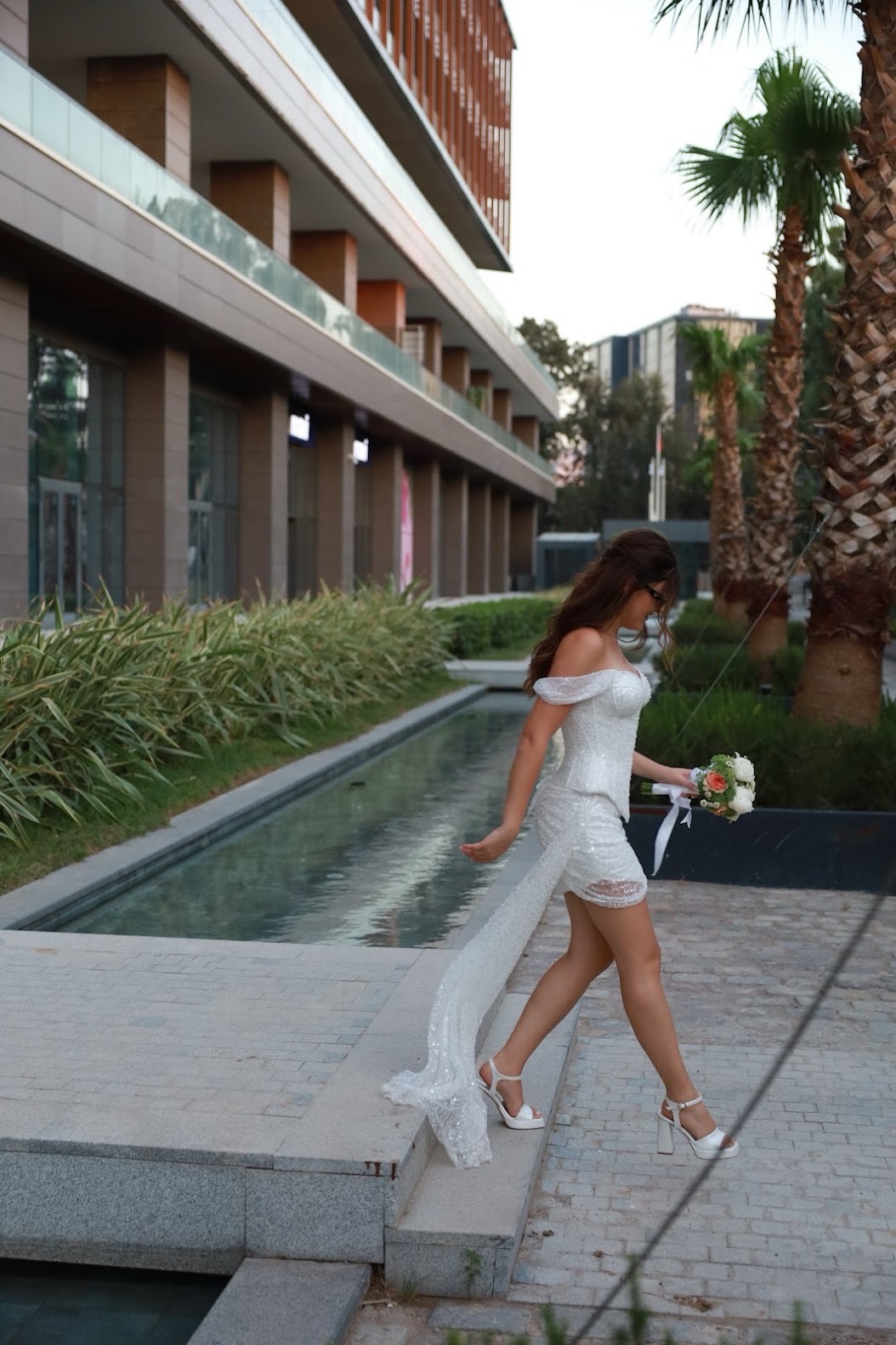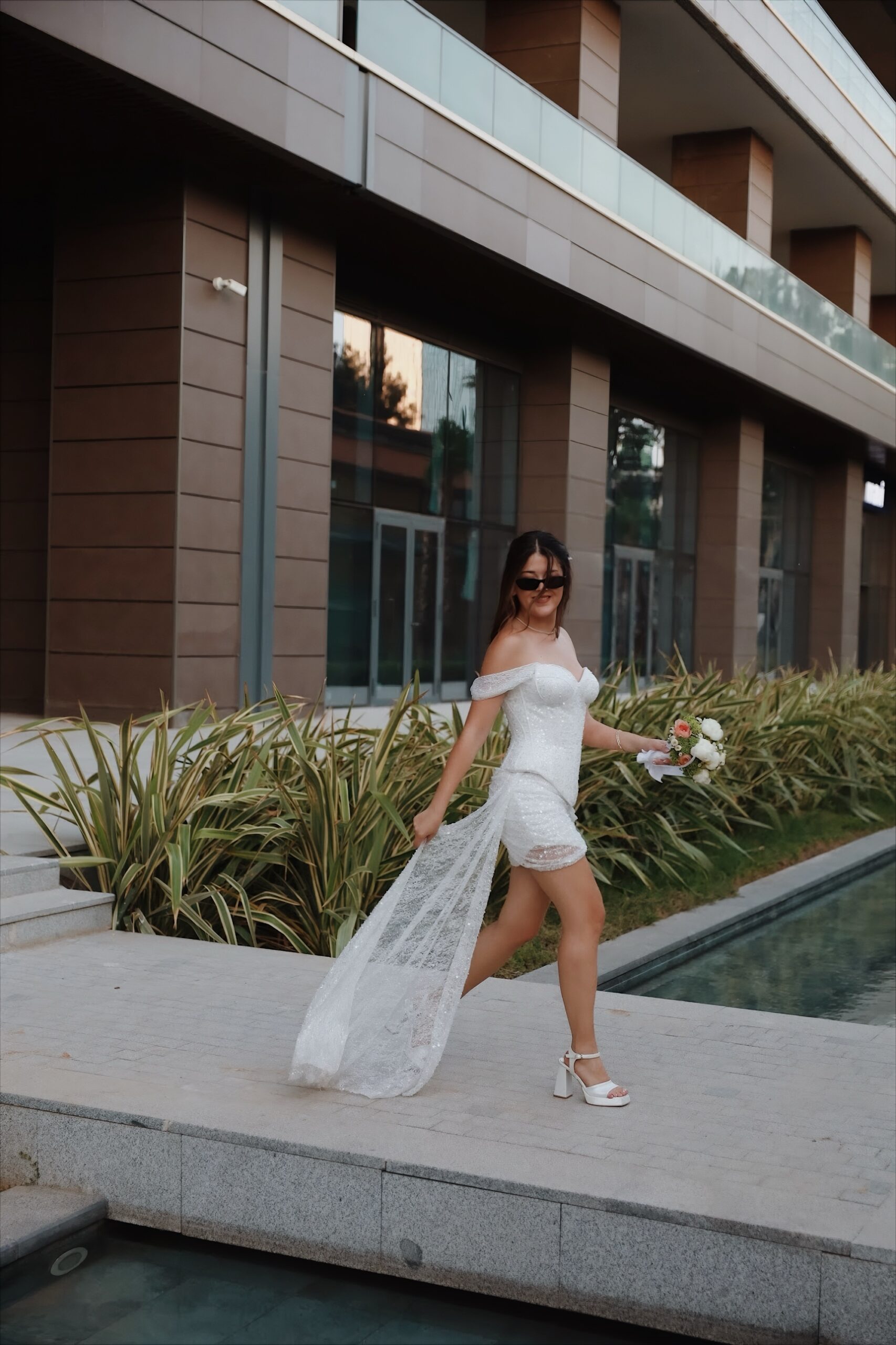 - İnci ve taş işlemeli ithal dantel kullanılmıştır.