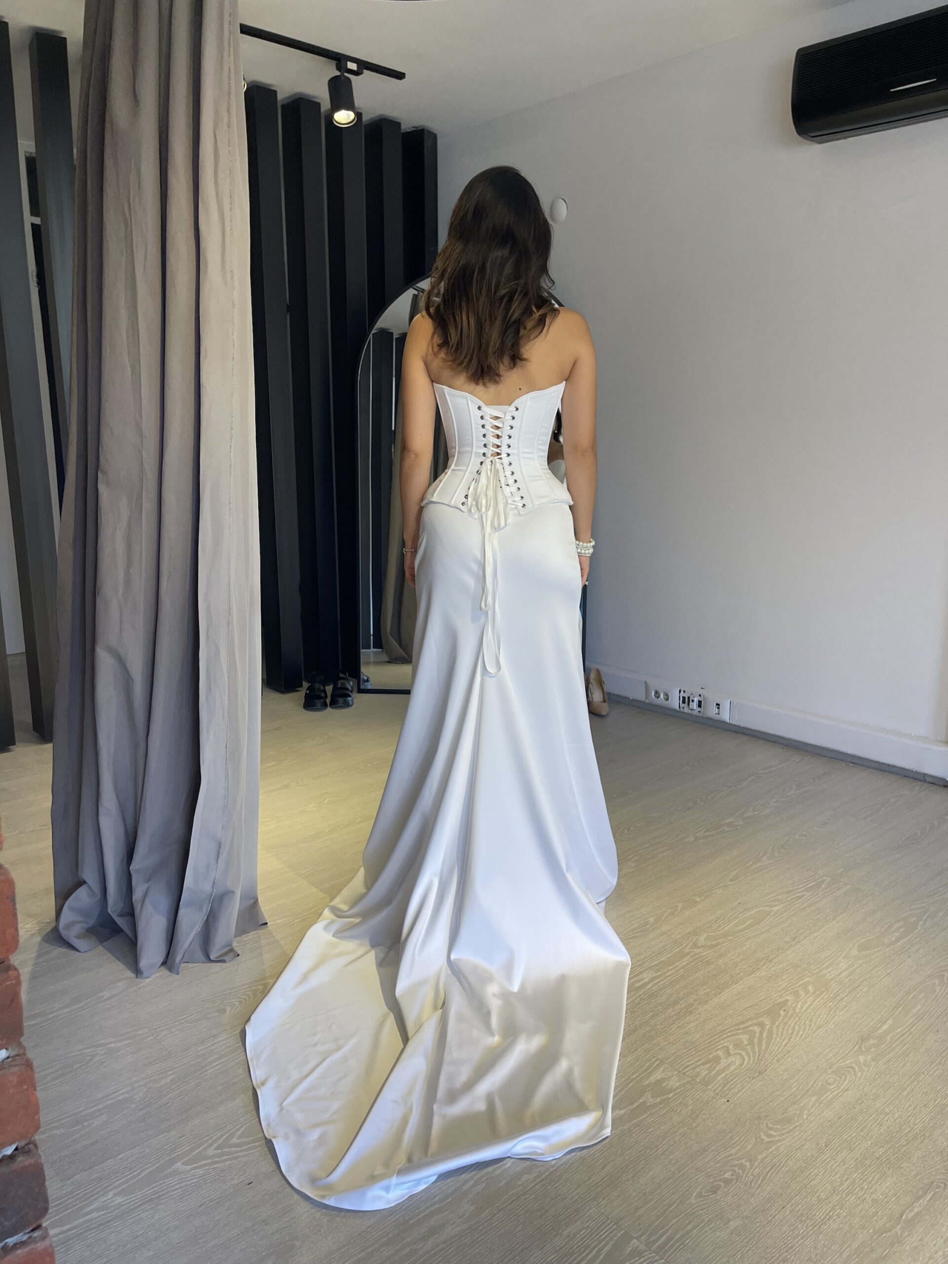 - Kırık beyaz asetat saten kumaş
