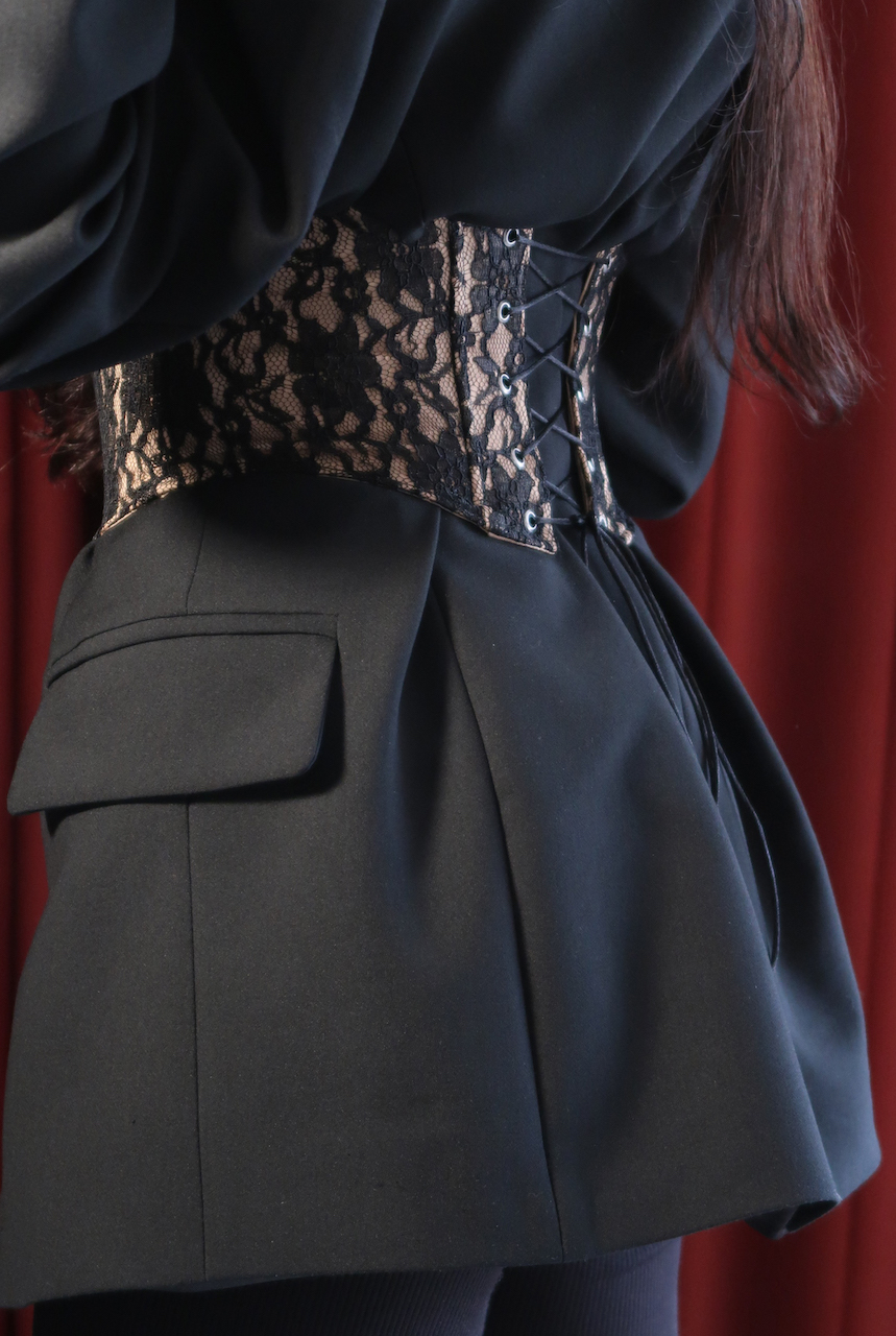 - Ten rengi interlok kumaş üzerine siyah yumuşak dantel kaplama