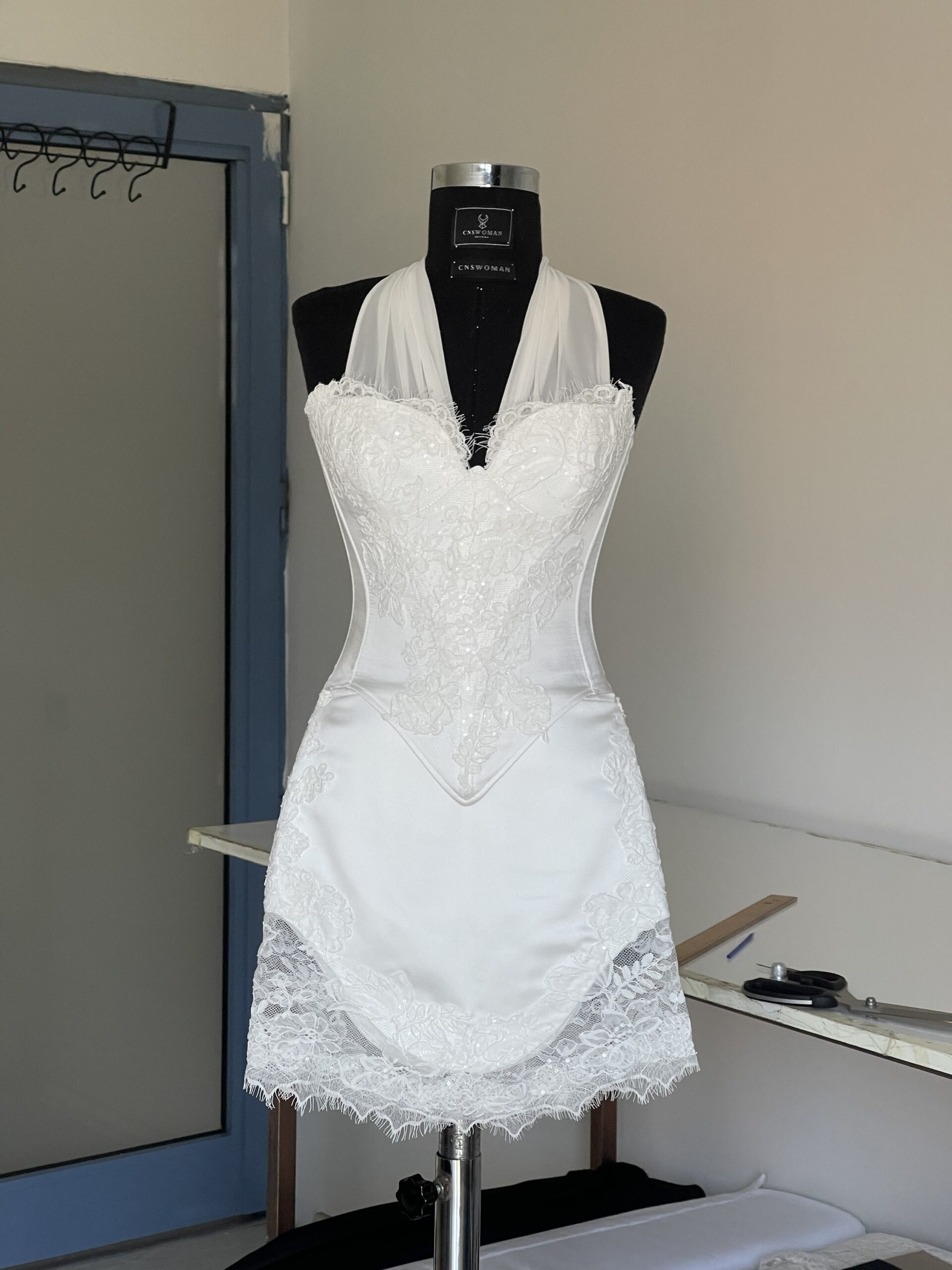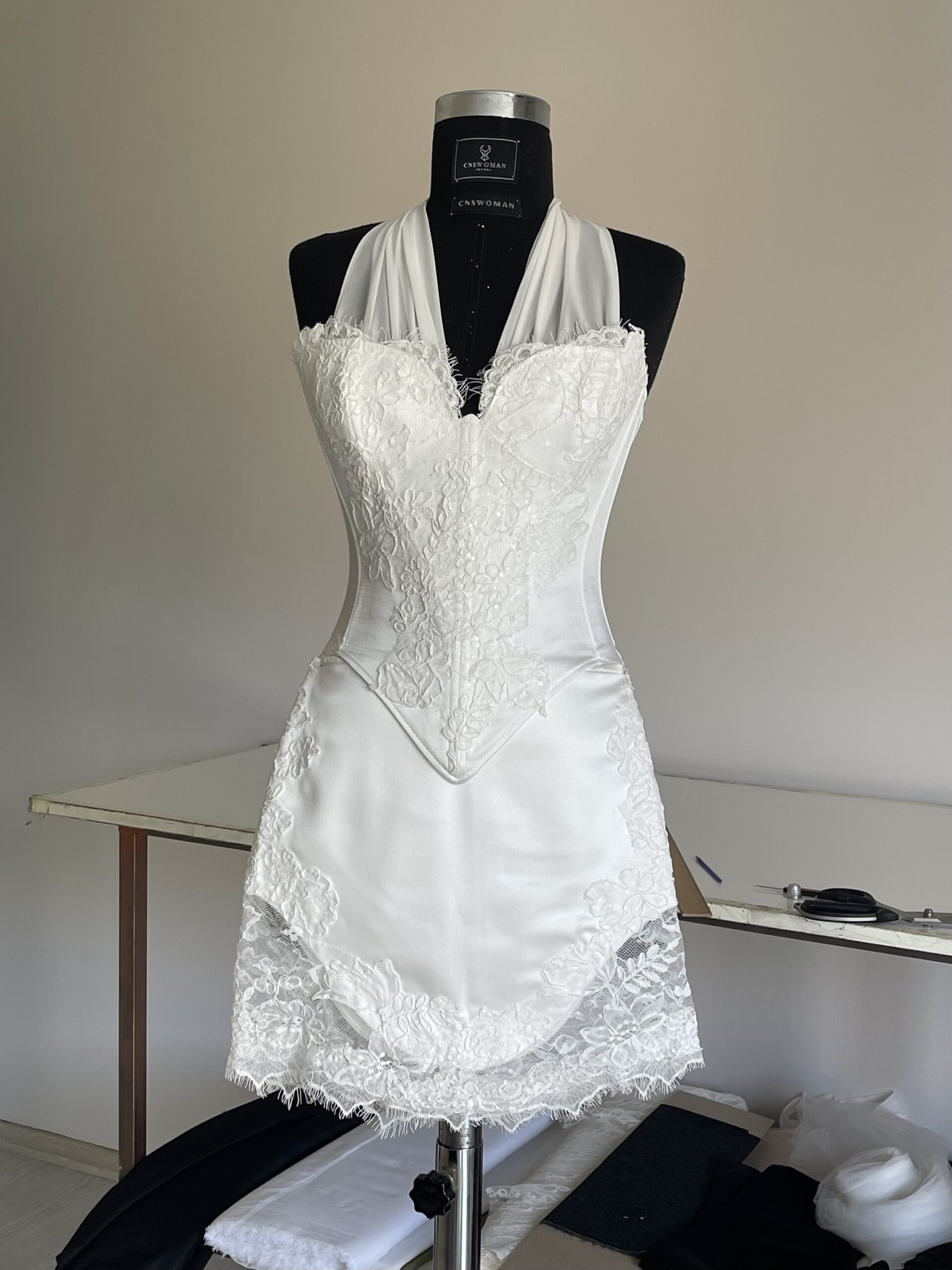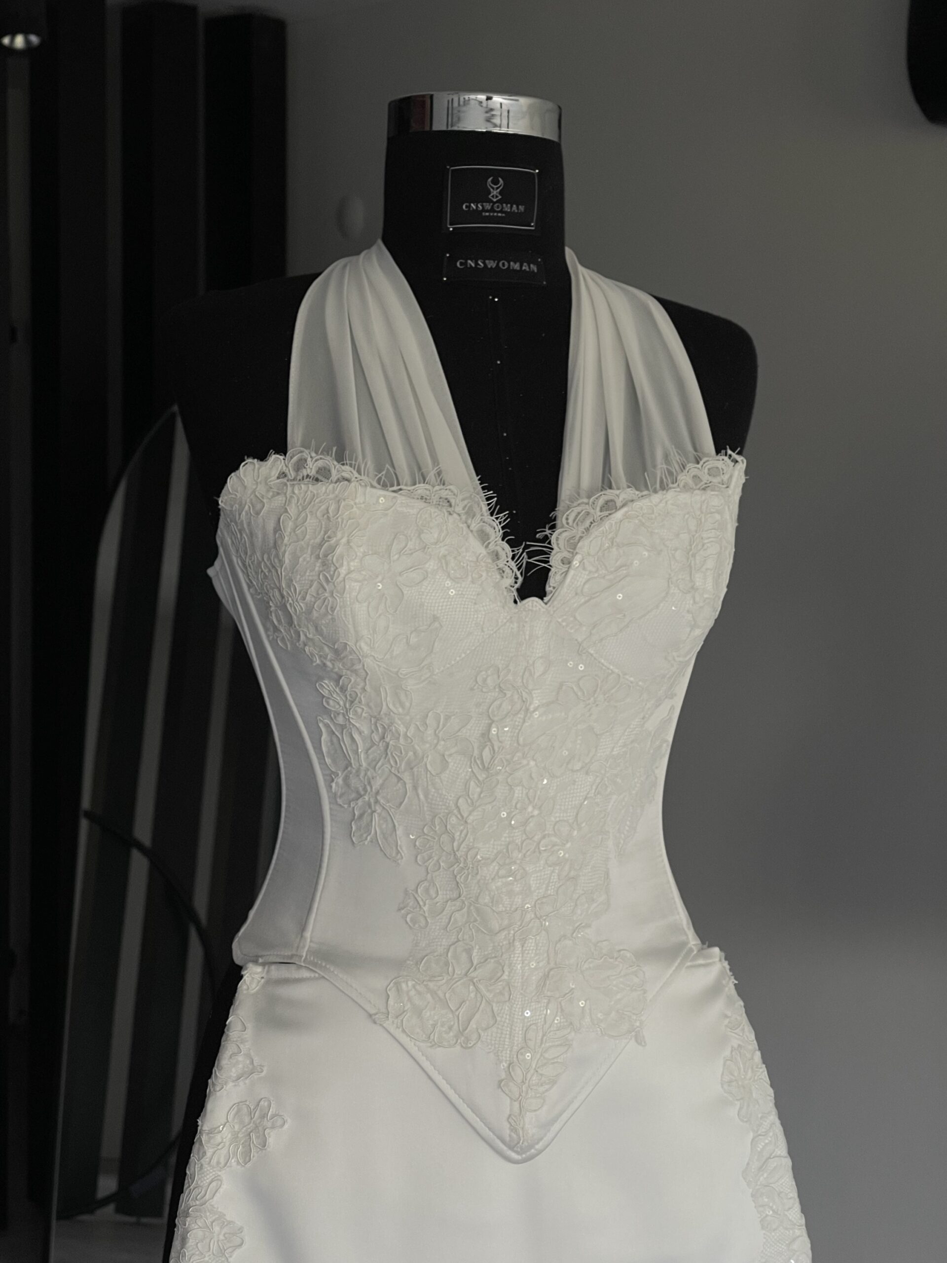 - Korsede bulunan şifon boyun bağı isteğe gmre çıkarılabilir.