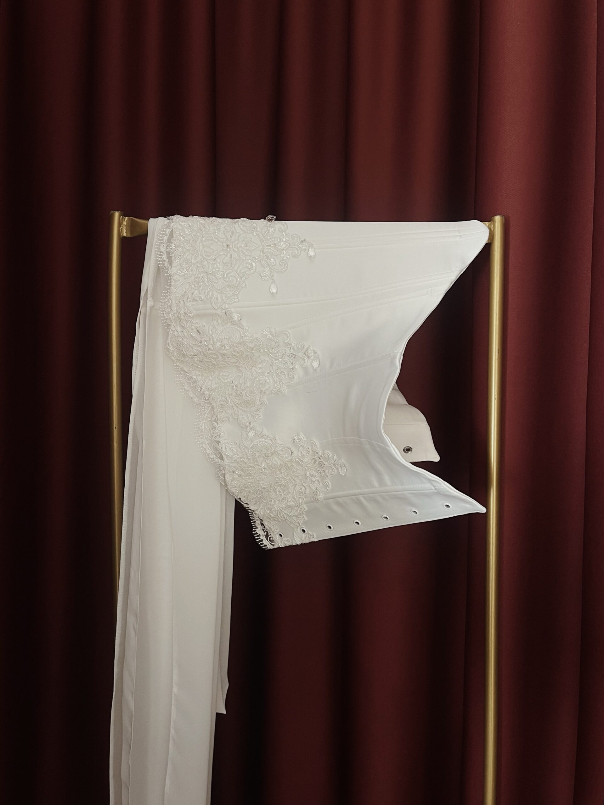 • Korse üzerine yapılan işlemeler el işçiliği ile hazırlanır. Ayrıca kristal boncuk detaykarı vardır.